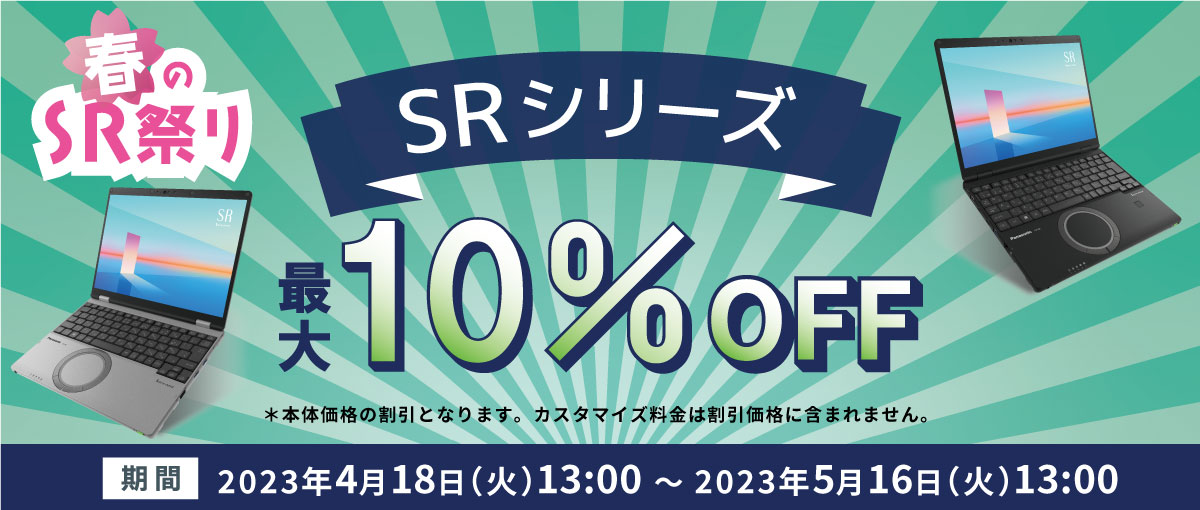 SRシリーズをご購入の際にクーポンを利用すると、本体価格が最大10%OFFとなります!※本体価格の割引となります。カスタマイズ料金は割引価格に含まれません。